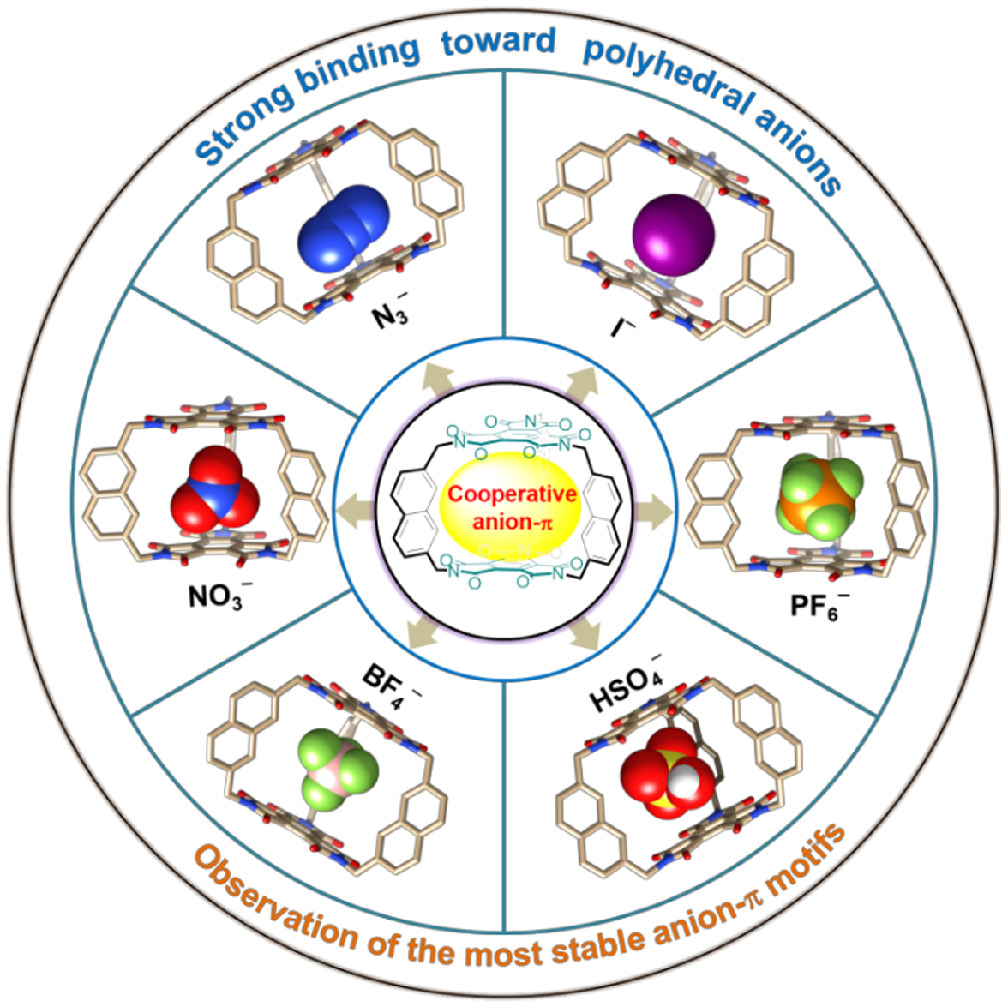Naphthalene-pillared benzene triimide cage: An efficient receptor for polyhedral anions and a general tool for probing theoretically-existing anion–π binding motifs
