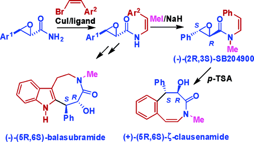 Highly efficient and stereoselective N-vinylation of oxiranecarboxamides and unprecedented 8-endo-epoxy-arene cyclization: Expedient and biomimetic synthesis of some clausena alkaloids
