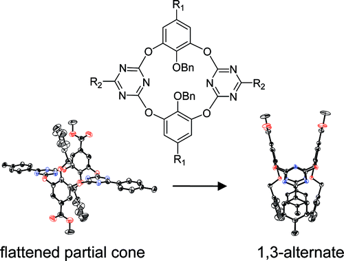 Formation and conformational conversion of flattened partial cone oxygen bridged calix[2]arene[2]triazines