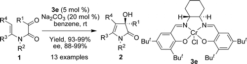 Cr(III)(salen)Cl catalyzed enantioselective intramolecular addition of tertiary enamides to ketones: A general access to enantioenriched 1H-pyrrol-2(3H)-one derivatives bearing a hydroxylated quaternary carbon atom